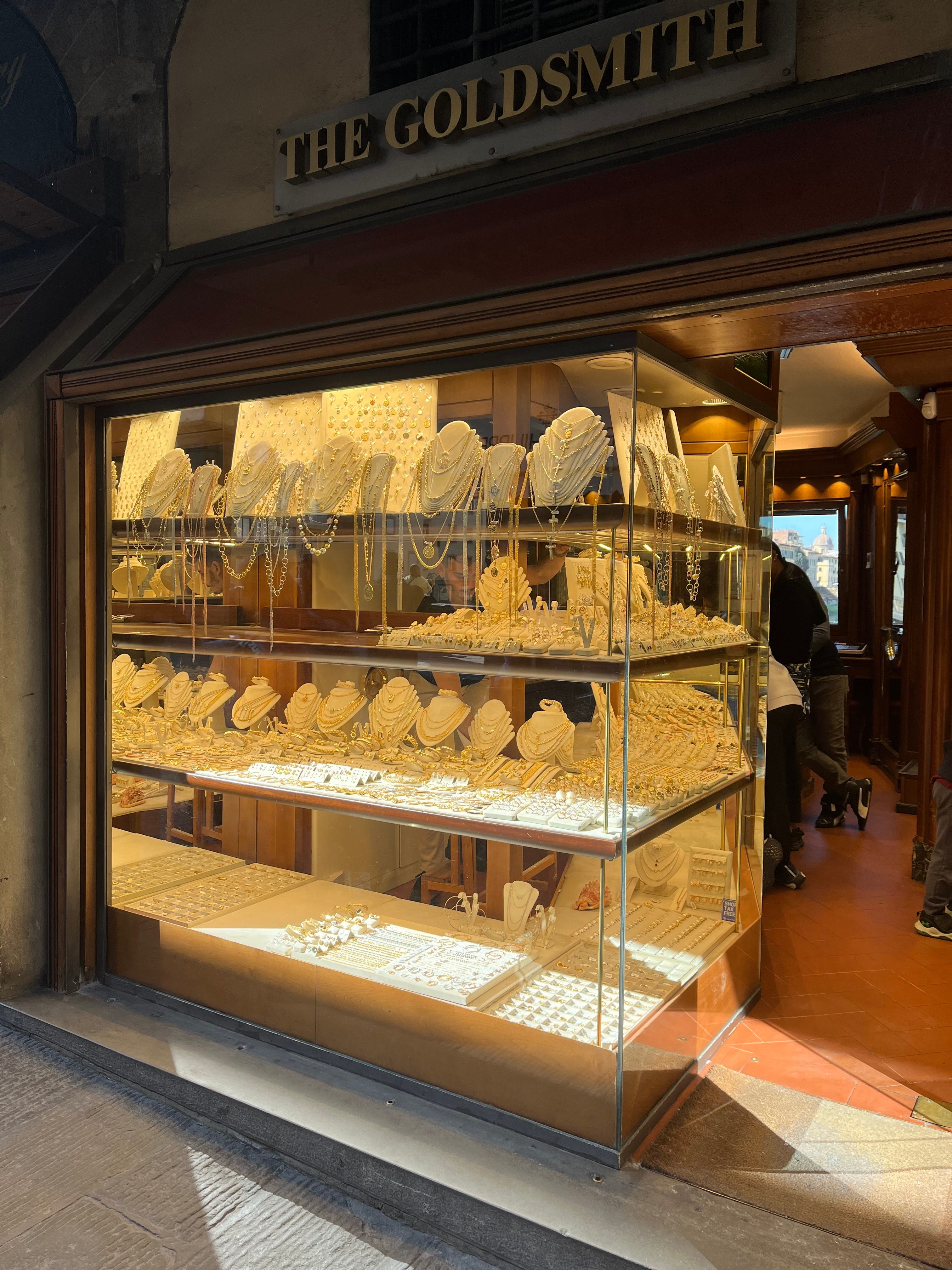 Navigating the Ponte Vecchio to go to the grocery store or to my daily art history class in the Oltrarno is a challenge. The bridge is packed full of people stopping to check out the elaborate jewellery in the gold shops and to take selfies with the Arno as backdrop.